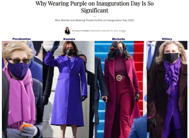 Hints of this American Purple Revolution began emerging with the strange display of notable Democrats wearing purple during the 2021 Biden Inauguration.  The BS explanation for their clothing is noted in the following current AI summary:
